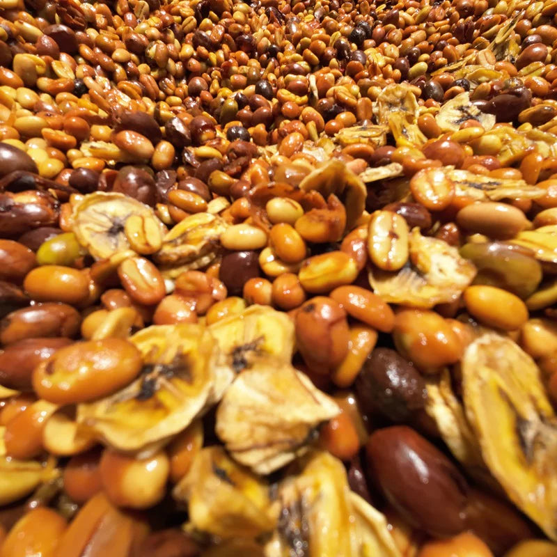 製程特色:新鮮採收的 Pink Borbon 櫻桃先經 48 小時預發酵,再去果皮,與酵母及香蕉風味共同發酵。咖啡在香蕉浸泡的黏液中發酵 5 天,帶出奶油質感與增強甜感。隨後先日曬預乾,再機械乾燥以保持穩定,並經過 30 天穩定處理,使風味充分融合,杯感順滑平衡。